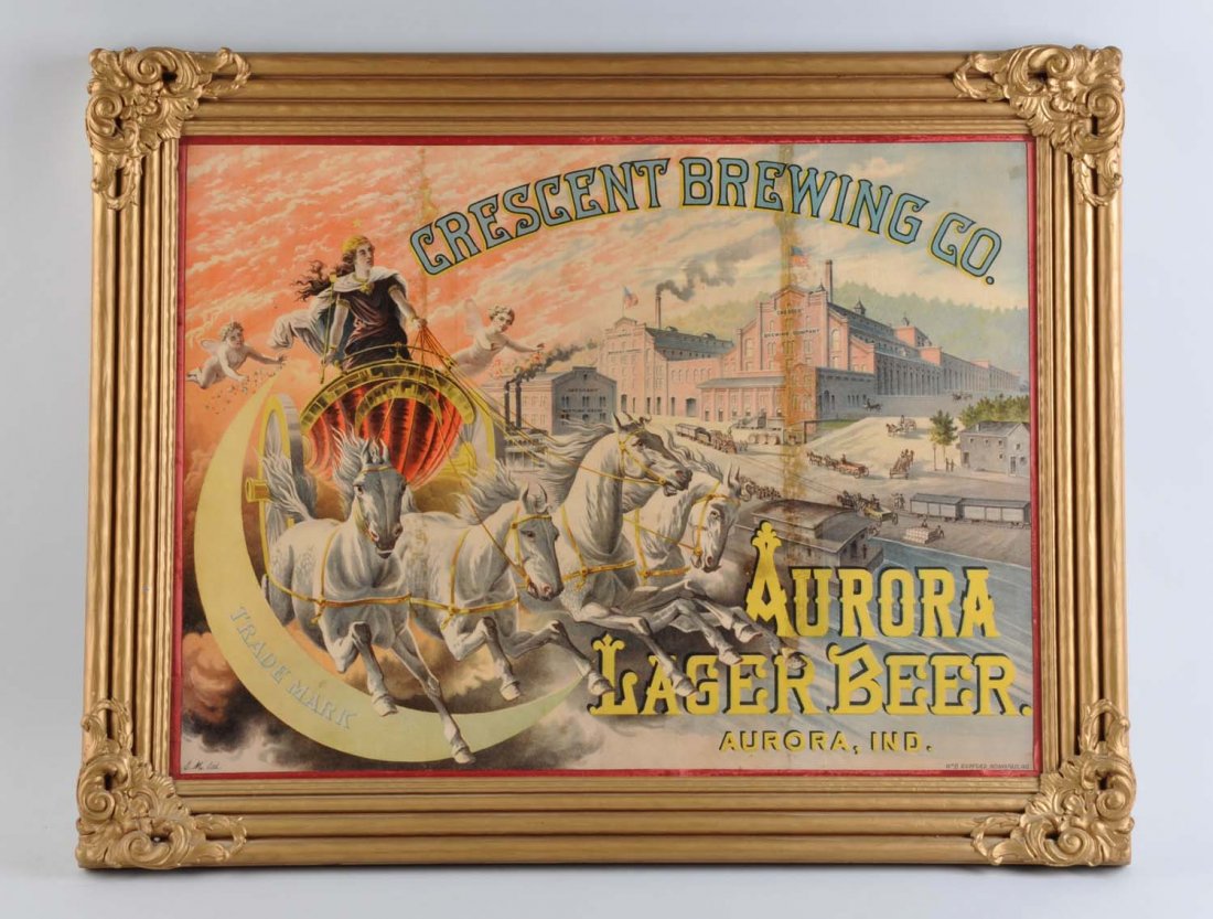 Crescent Brewing Co. Framed Paper Sign.