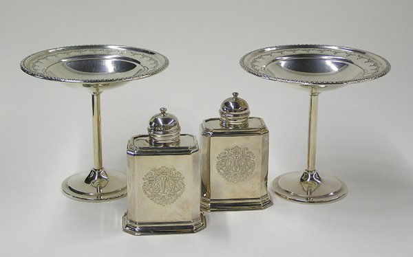 Three English Silver Serving and Table ObjectsMar 13, 2026Three silver articles6 days LeftCased George III Sterling Silver Tea Caddy SetMar 16, 2026A PAIR OF GEORGE III SILVER SHAPED OVAL TEA CADDIES, AARON LESTOURGEON, LONDON 17816 days LeftGorham Mfg. Co. Silver-Soldered Five Piece Tea & Coffee ServiceMar 14, 2026ANTIQUE VICTORIAN AESTHETIC GERMAN COIN SILVER TEA SET2 days LeftGorham Plymouth Sterling Silver Coffee & Tea SetMar 19, 2026Birmingham Silverplated Melon Form Tea ServiceMar 07, 20263 pcs Vintage Silver Plated Tea Pots, incl. 5th Ave Co., Meriden & Wilcox. Very Good Condition.Wilhelm BINDER. 6-piece tea and coffee set in Queen Anne style. 925, 835 and 800 silver.3 days LeftSILVER. Finest Quality French .950 Tea Service.Mar 08, 2026Art Deco Sterling Silver Tea and Coffee Set, 4pcs, Emile Viner, Sheffield, England, 1940.Mar 10, 2026American Aesthetic Silver-Plate Four Piece Coffee Service, late 19th c., Coffee- H.- 12 1/4 in., W.-2 days LeftCOLLECTION OF SILVERPLATEMar 06, 2026SILVERPLATE TEA AND COFFEE SERVICE5 days LeftSilver Plate Tea Set With Orientalist Motifs And Associated Tray (5-piece)1 day Left