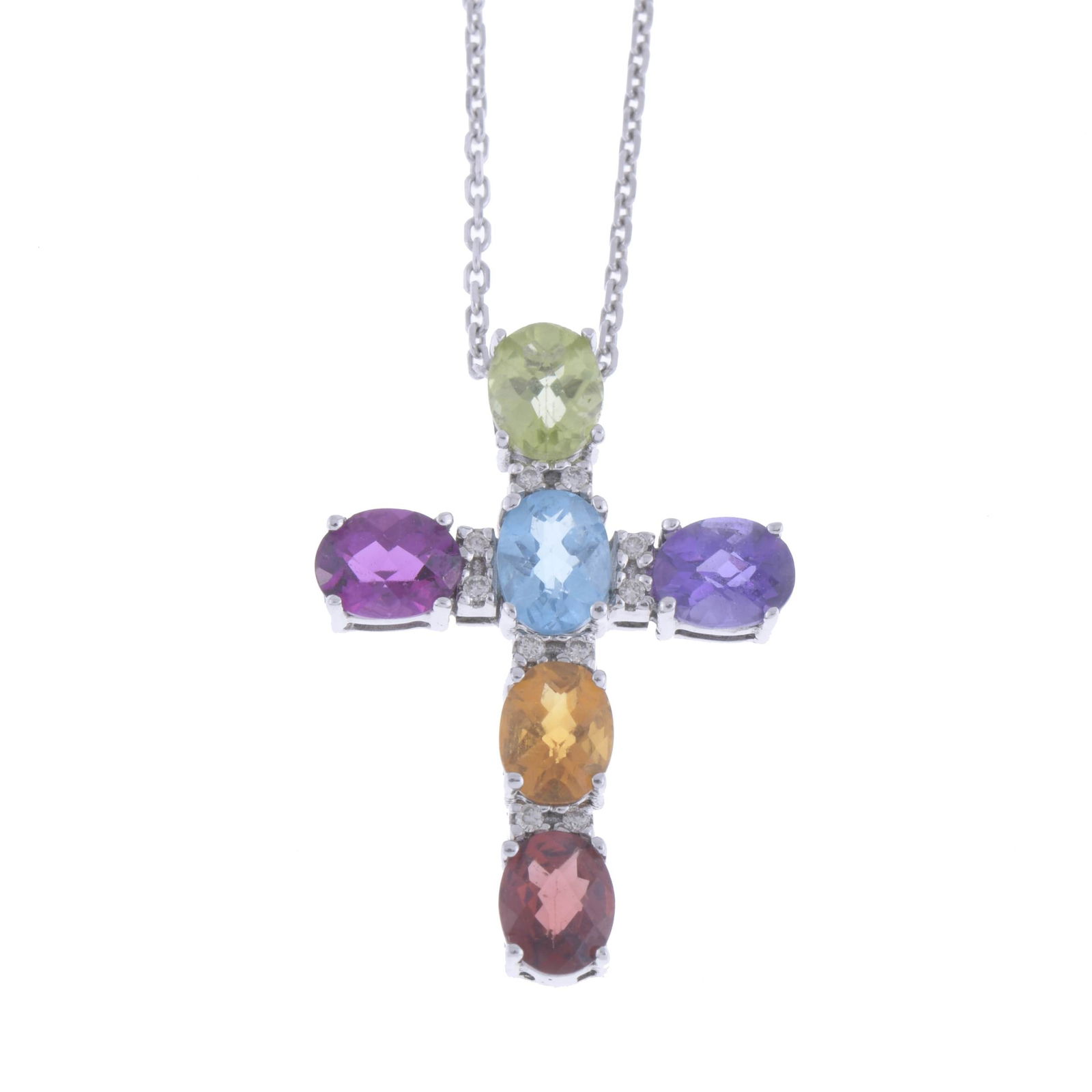 CROSS PENDANT WITH COLOURED TOURMALINES.