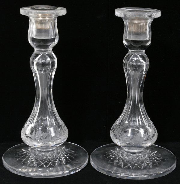 CRYSTAL CANDLESTICKS, PAIR, H7.8"