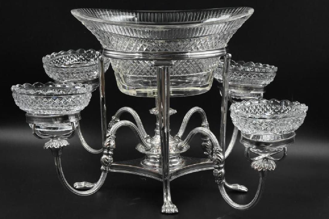 12 pc Lot Riverside Collectible Victorian GlassMar 01, 2026TETARD FRERES - TWO LOUIS XV 4-CANDLE CANDELABRA IN 950 STERLING SILVER - 1905 !VICTORIAN SILVER PLATE EPERGNE BY MAPPIN AND WEB4 days LeftCut Crystal and Silver Plate Figural EpergneMar 04, 2026ENGLISH CRYSTAL AND SILVER PLATE EPERGNEMar 07, 2026Excellent English George III Silver Plate Centerpiece by Matthew BoltonFeb 28, 2026Cut Crystal Compote Centerpiece Bowl Sawtooth RimMar 28, 2026Joseph Rogers & Sons Queens Silverplate Epergne 1890 with Shell Motif1 day LeftThree-Piece Silverplate & Glass Table GarnitureFeb 26, 2026Elegant 7 Piece 925 Sterling Silver Floral Leaf Epergne CenterpieceFeb 28, 2026Pairpoint Silverplate Cut Glass Controlled Bubble CandleabrumMar 01, 2026Waterford Crystal "Master Cut" Footed Center BowlMar 28, 2026Pedestal Center Bowl, American Brilliant Cut Glass, Engraved Floral DesignMar 07, 2026Cake Stand, Two Part, American Brilliant Cut Glass, Fern Pattern By Ohio Cut GlassMar 07, 2026Empire Cut Crystal ChandelierFostoria Pressed Glass Compote for the Henry Ford Museum