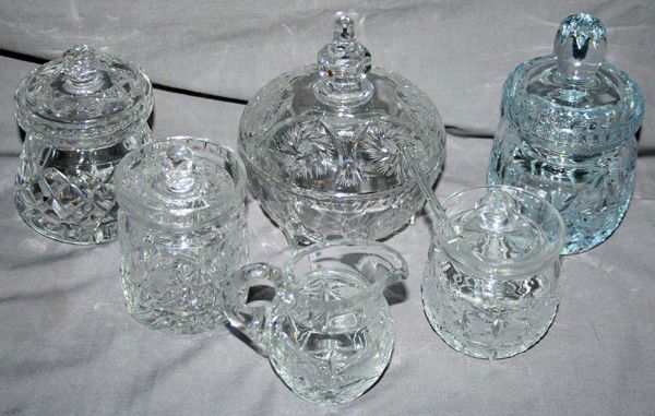 CRYSTAL CONDIMENT PIECES, SEVEN