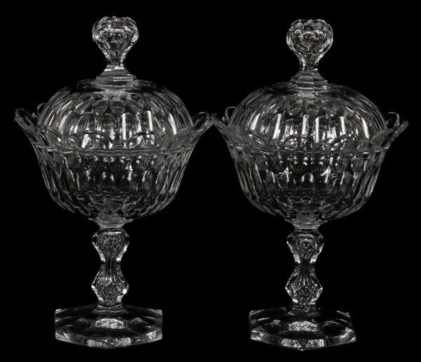 CRYSTAL COVERED COMPOTES, PAIR, H 12", DIA 7"