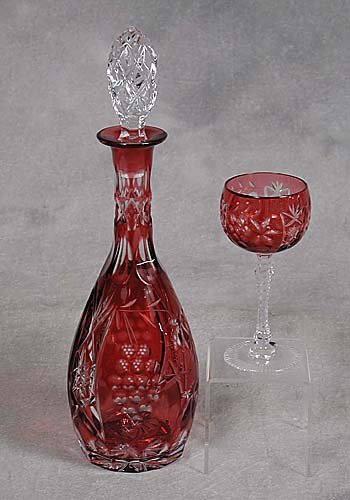 Crystal decanter set ruby-cut-to-clear d