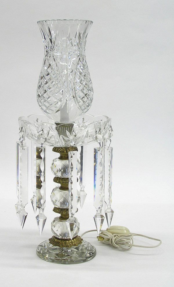 SoldUnique Waterford Crystal Hurricane Lamp, tested and workingAppears to be in good shape, a couple of chips on the edge of the shade, tested and working. Piece when assembled measures approx 19h x 9.5d inches. Bulb not included. See pics. E-2661See Sold Price