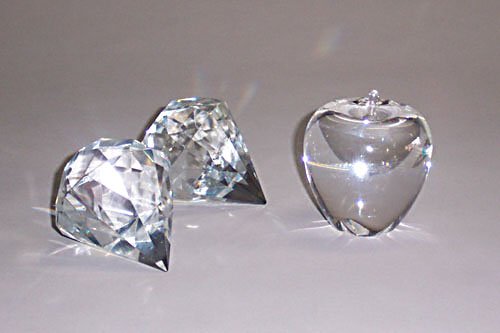 CRYSTAL STEUBEN APPLE & PAIR TIFFANY DIAM