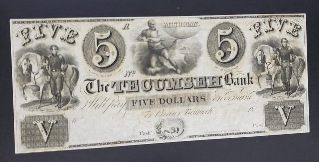 CU 1800s The TECUMSEH BANK $5 NOTE