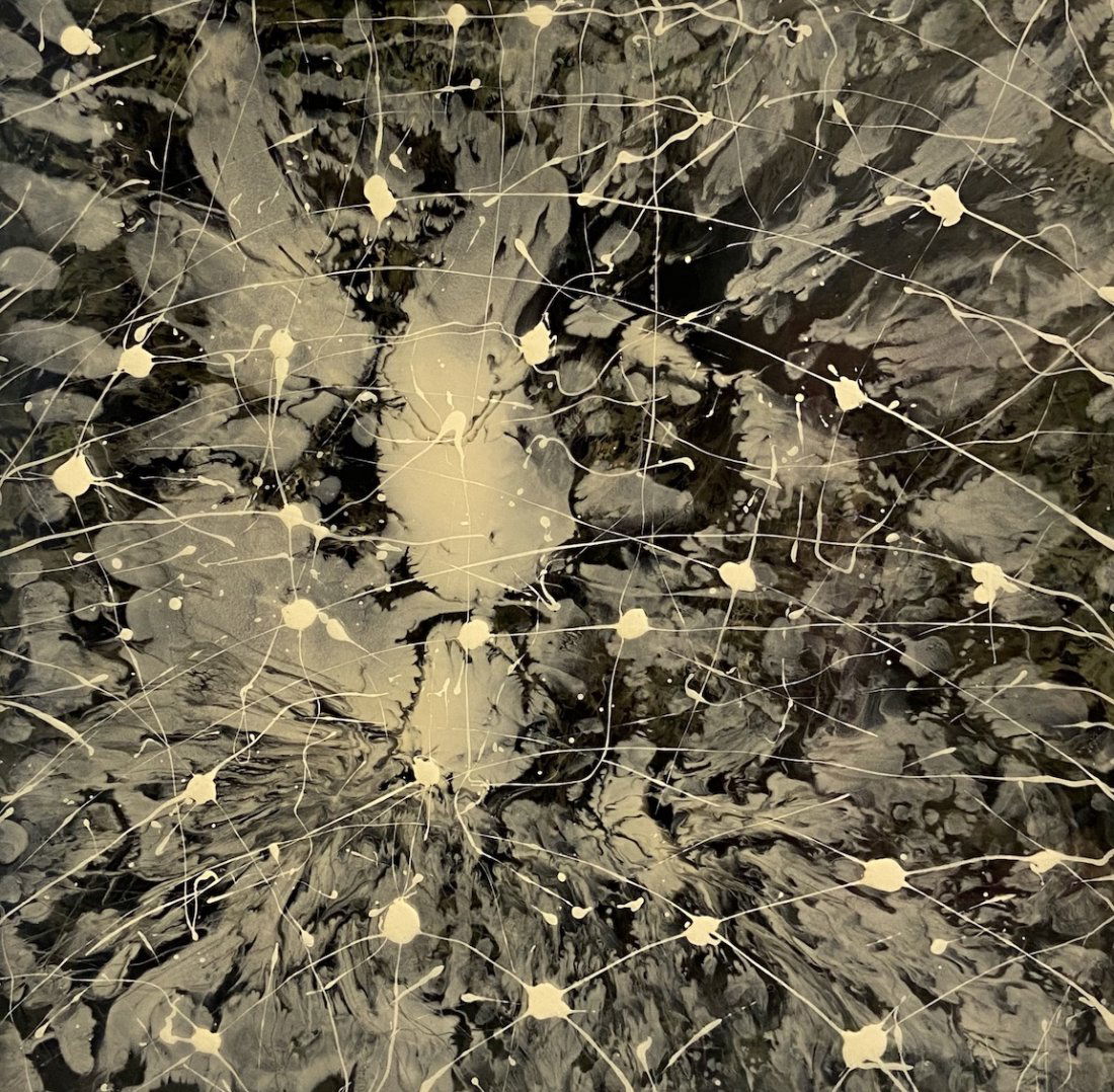 Cuban Expressionist Abstract Acrylic Pour, Signed