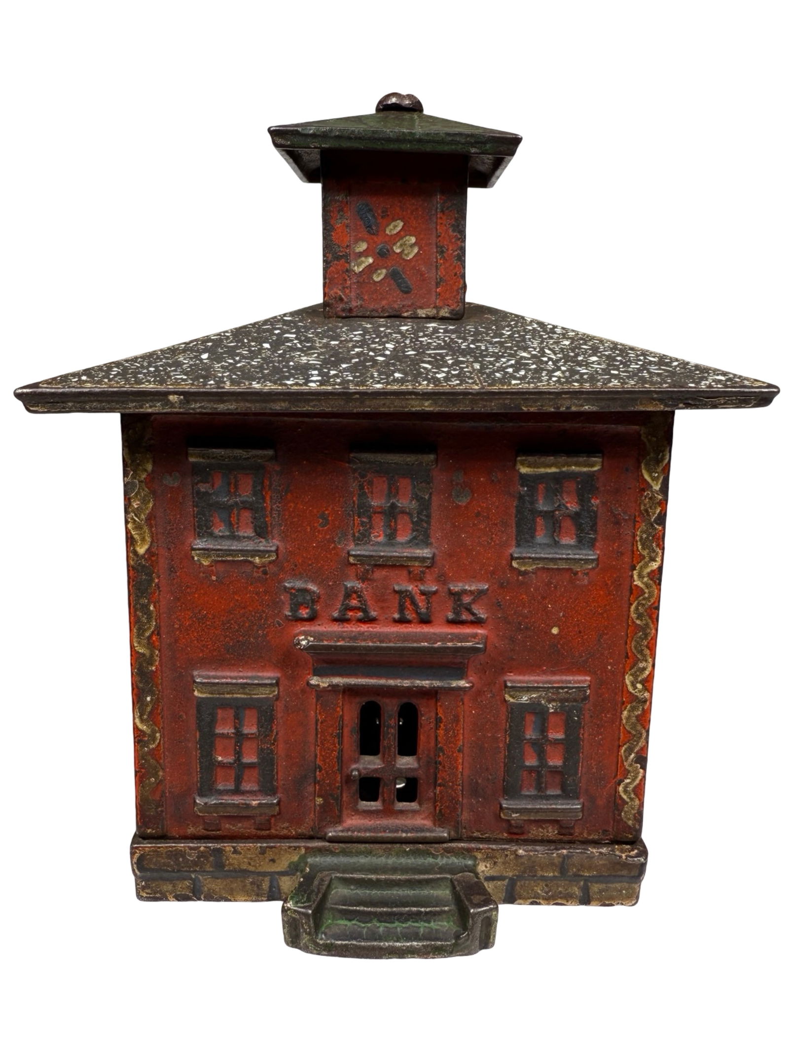 SoldLARGE CUPOLA BANK STILL BANK1298. LARGE CUPOLA BANK STILL BANK | J&E Stevens Co. | 6" h. | All original (Excellent Condition) | $500 - $750See Sold Price