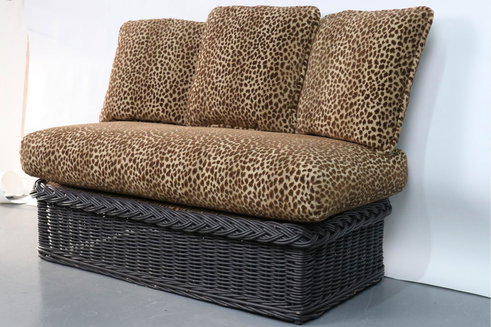 Custom Cheetah Upholstered Wicker Bench