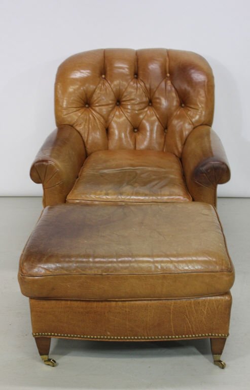 Contemporary Chesterfield Type Club Chair and Ottoman