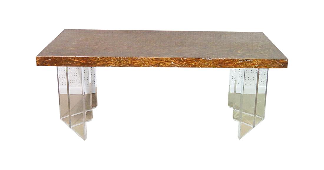 CUSTOM METAL TOP LUCITE BASE TABLE