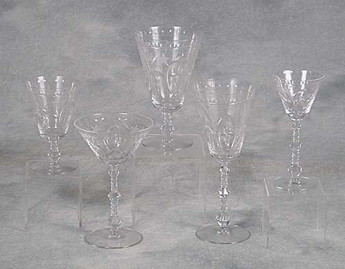 Cut and etched glass stemware consisting