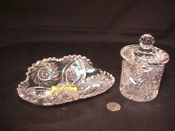 CUT CRYSTAL CONDIMENT JAR AND CELERY DISH