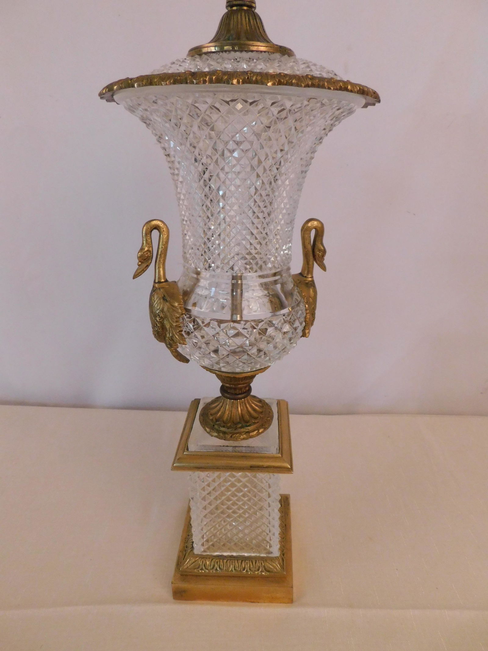 CUT CRYSTAL SWAN LAMP