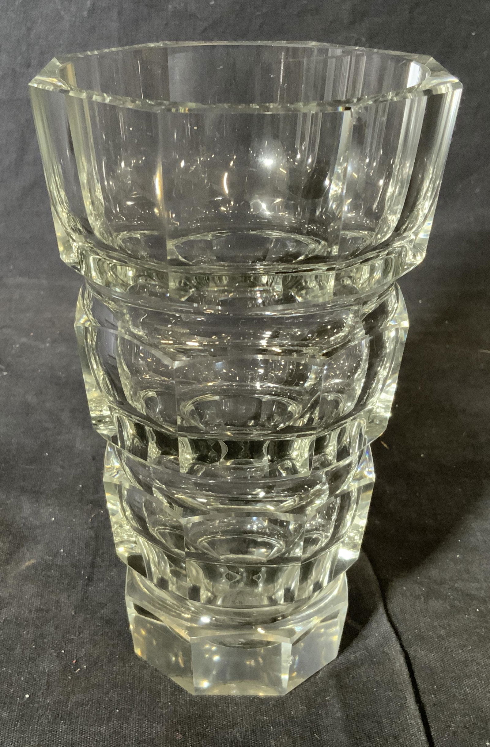 SoldA BACCARAT CUT CRYSTAL VASE IN THE "EYE" PATTERN,A BACCARAT CUT CRYSTAL VASE IN THE "EYE" PATTERN, FRENCH, EARLY 21ST CENTURY, of tapering conical form cut with horizontal bevels on the exterior and vertical bevels on the interior, acid etched manufSee Sold Price