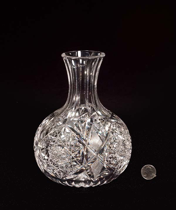 Cut crystal water bottle, signed "Libbey," 8-1/2"