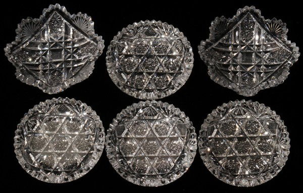 CUT GLASS BUTTER PATS, SIX (TWO PATTERNS),