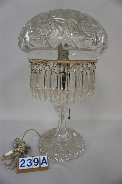 CUT GLASS TABLE LAMP WITH HANGING PRISMS-
