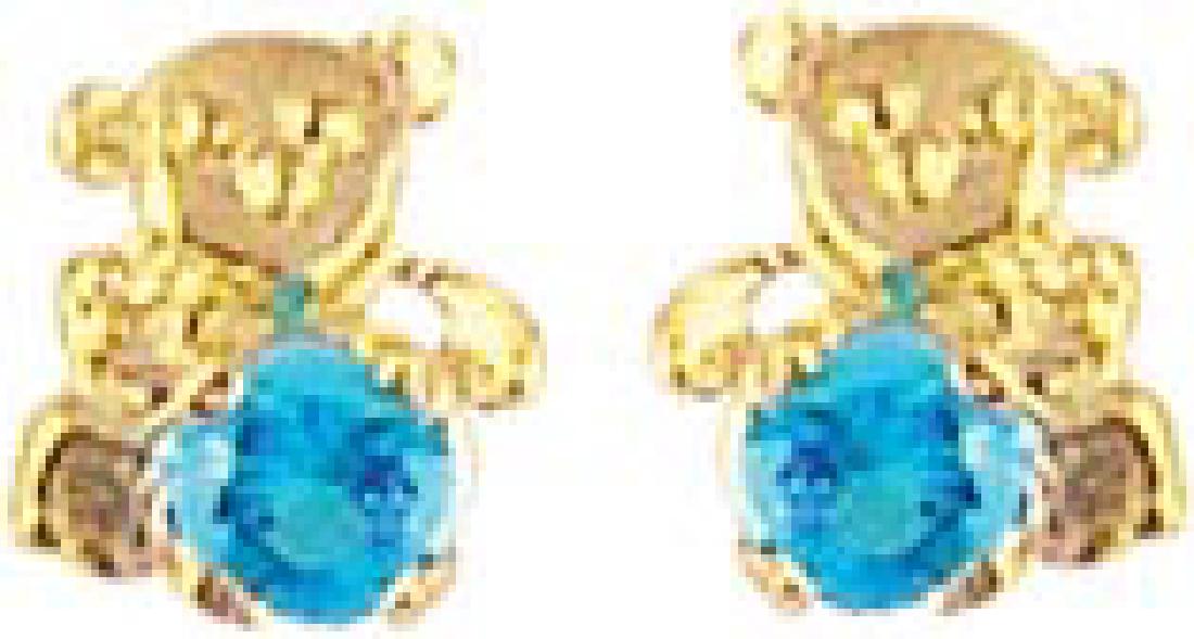 Cute original earrings 14K Yellow Gold Solid Bears Blue