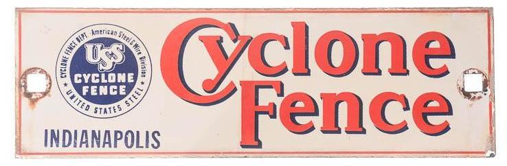 SoldCyclone Fence Porcelain SignCyclone Fence Porcelain Sign. In-house shipping available. Dimensions: 4 x 14See Sold Price