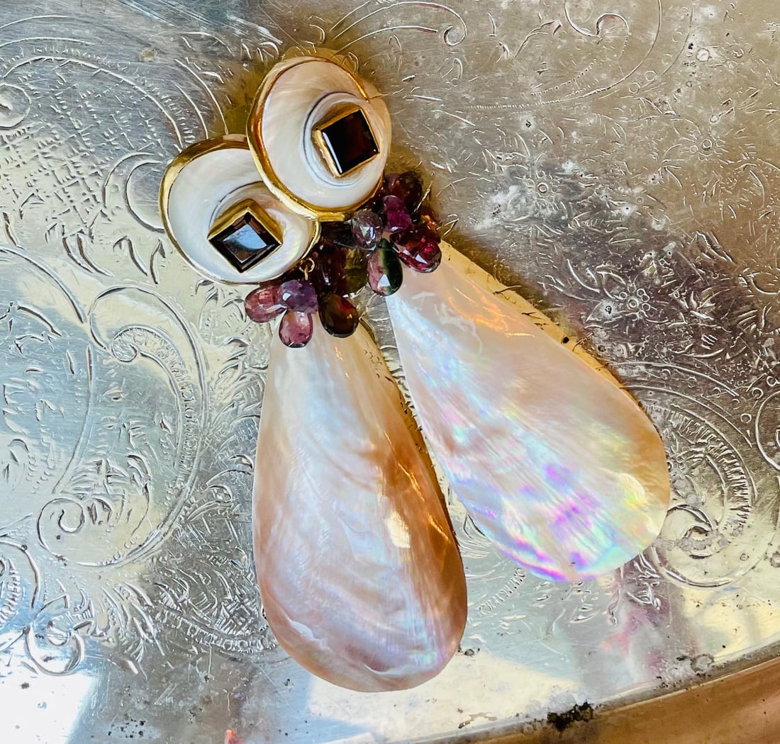 Cymbatium Shell Earrings with Pyrope Garnets