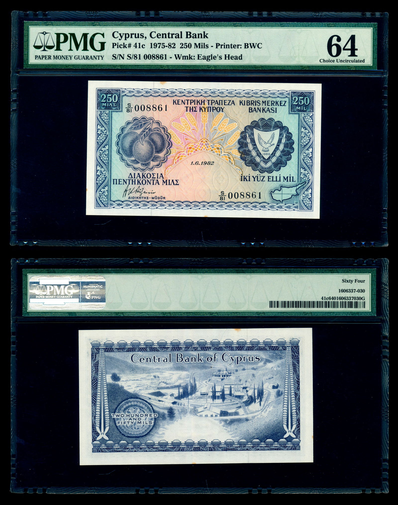 Cyprus 250 Mils 1975 82 Pmg