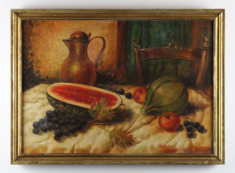 D. Roberti, Fruit on the Table, Oil on Canvas