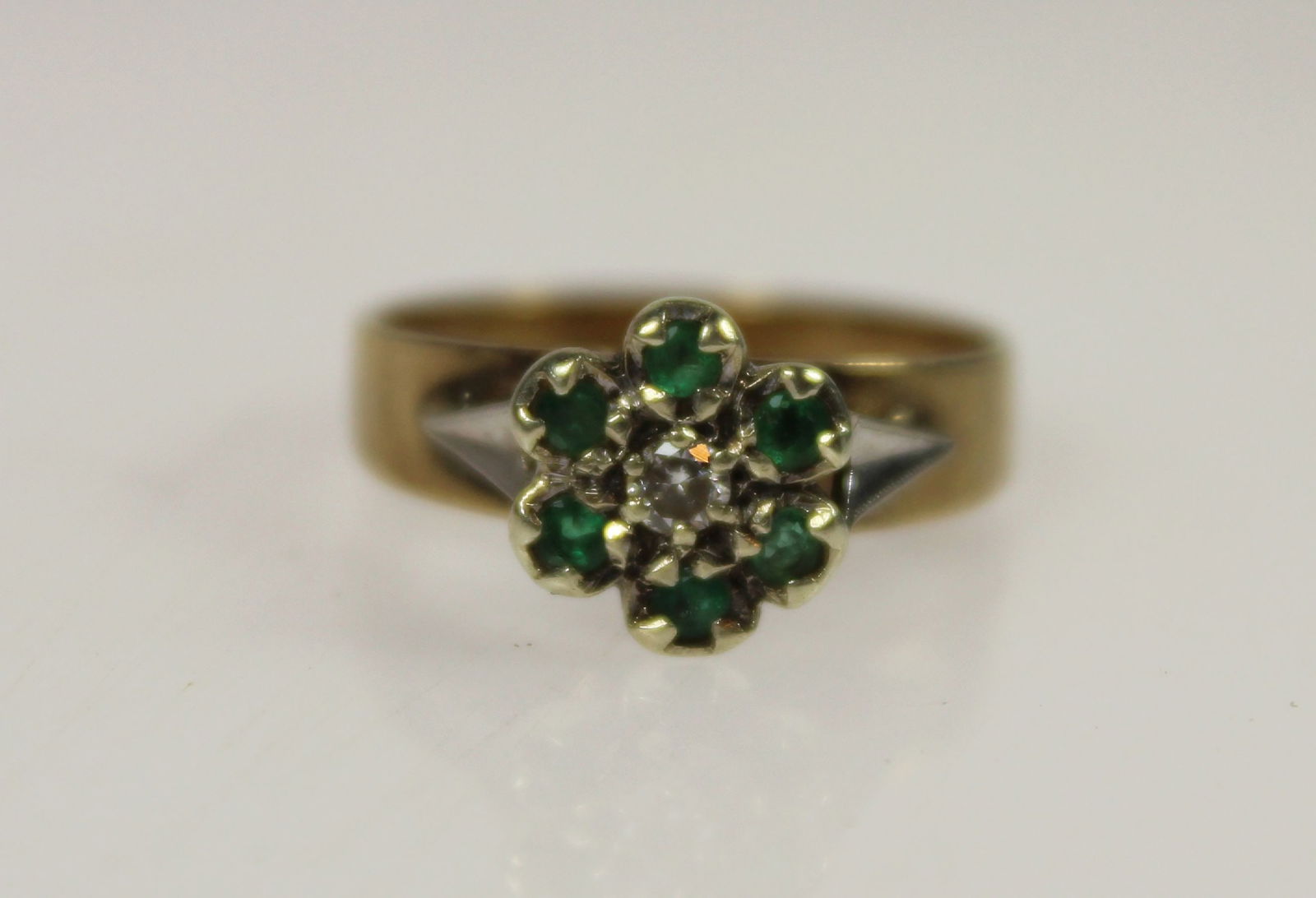 Daisy Pattern Emerald & Diamond Ring in 9ct Yellow Gold