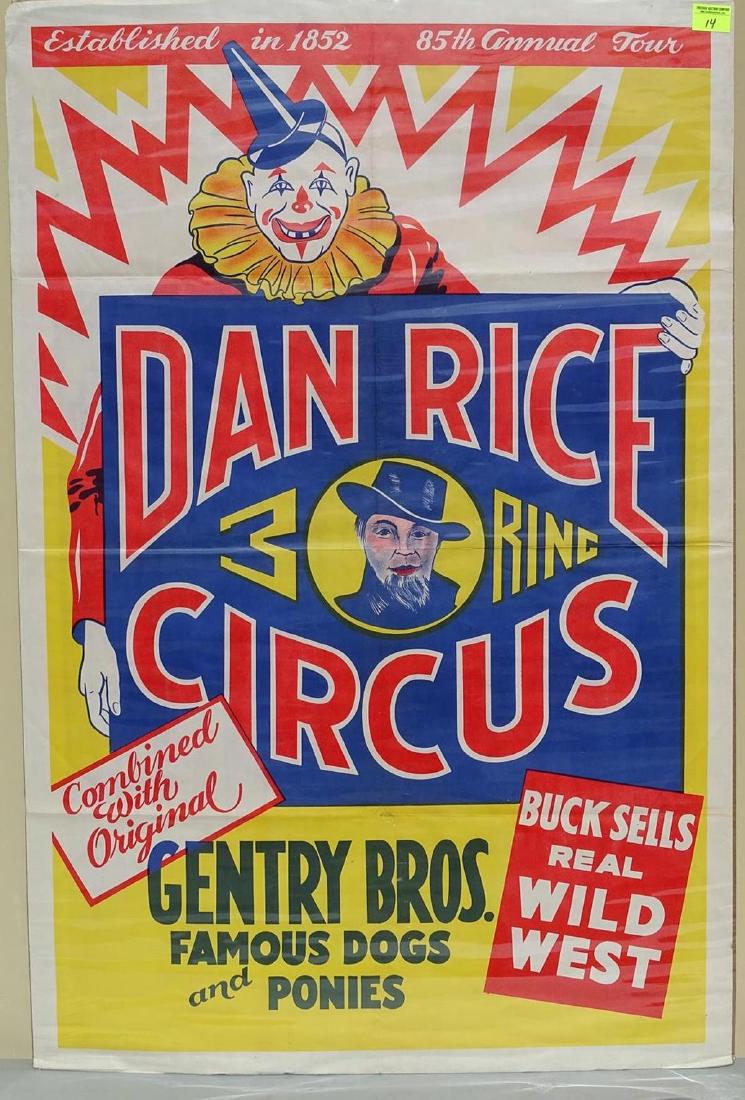 DAN RICE 3-RING CIRCUS POSTER, C.1937
