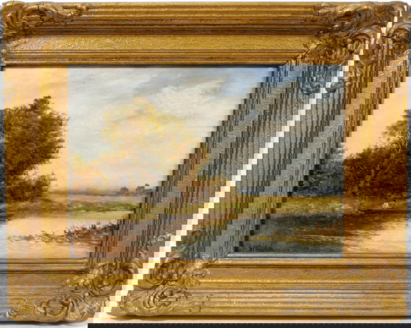 Riverside Landscape, A 19th Century Oil on Canvas Painting