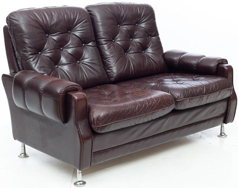 Danish Modern Dark Brown Leather 2 Seater Sofa