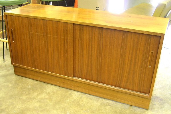 Three Door Teak Modernist Credenza Sideboard. Interior shelves. Illegible branded Mark on back.Uniques and Antiques, Inc.4.7(865)$200(1 bid)396 Lots Away