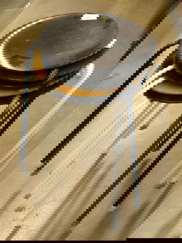 Set 4 Danish Modern Teak Top Stacking Stools. Possibly Early "Dot" Stools / Nesting Tables by Arne JSet 4 Danish Modern Teak Top Stacking Stools. Possibly Early "Dot" Stools / Nesting Tables by Arne Jacobsen for Fritz Hansen. Black tube leg construction. Marked Made in Denmark. Dimensions: Height: 1