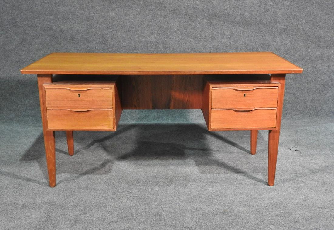 SoldDanish Teak Floating Top DeskWell built Teak desk of mostly solid wood components. Note the high quality drawer construction. Has had a wonderful restoration. No key, structurally sound with a quality finish. Comes apart easily fSee Sold Price