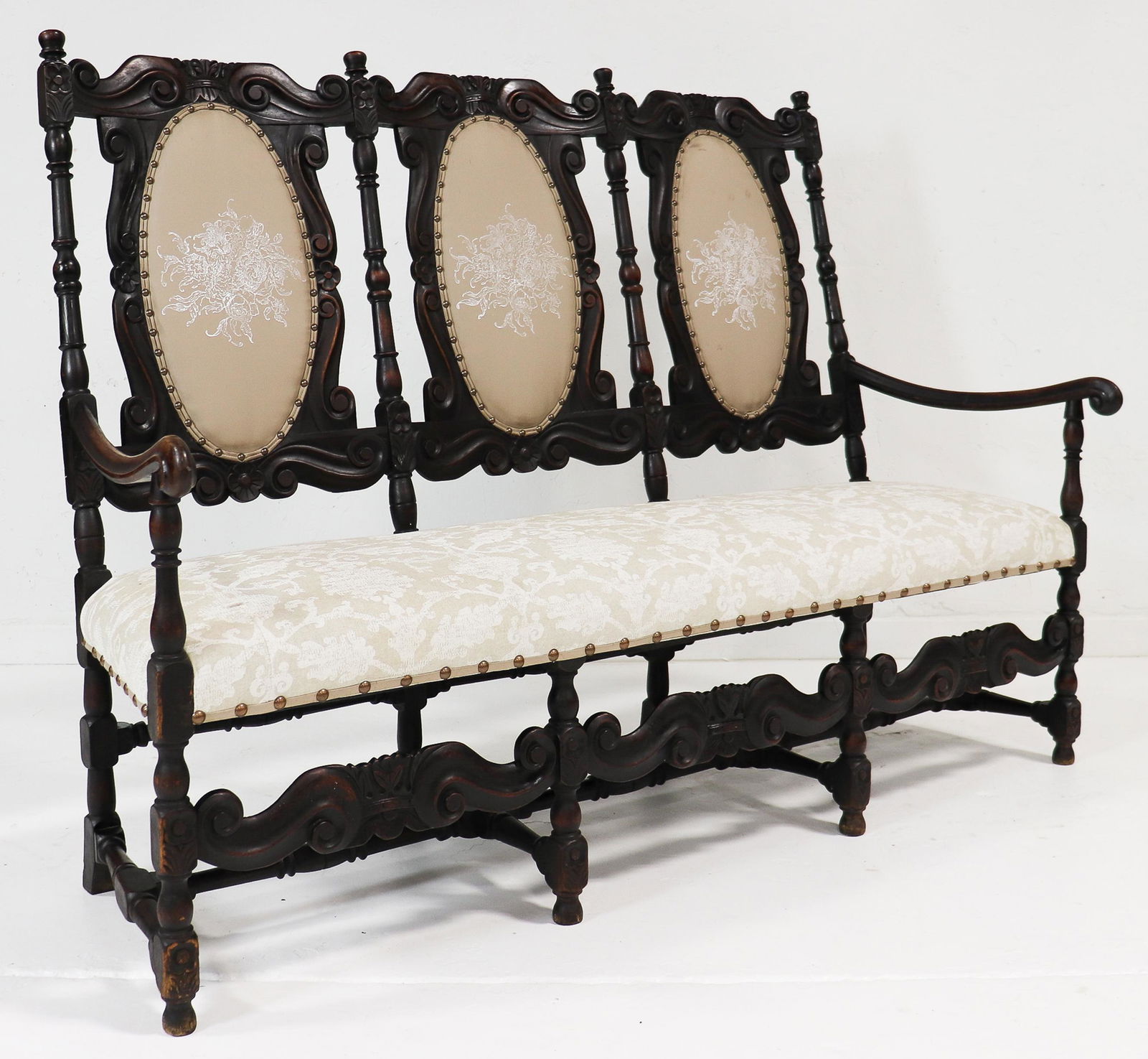 Antique Carved Spindle Back Upholstered Settee, companion to lot 205 - 20"x39"x33.5" - NOTSwisher Bros. Auction LLC4.5(265)$5(1 bid)7 days Left