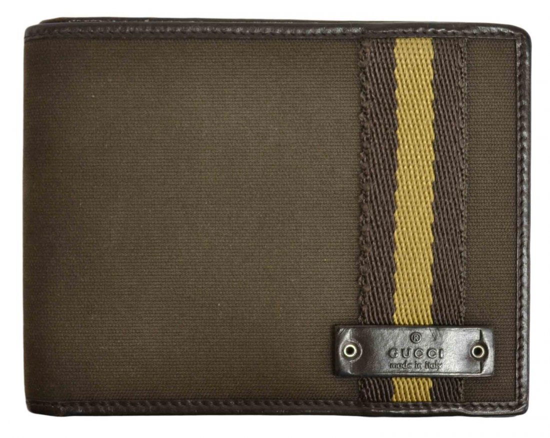 GUCCI DARK GREEN & TAN WALLET, LEATHER INTERIOR