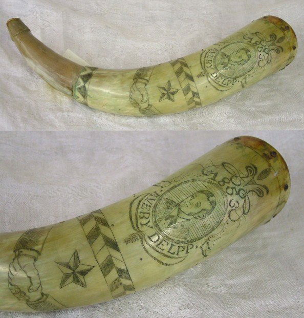 Hand Engraved Scrimshaw Tusk Signed SHJul 10, 202519th Century English Scrimshaw Steer Horn with Armorial Crest1 day LeftUS or European Scrimshaw Powder Horn Continental War Period 18th CenturyFeb 28, 2026PAIR OF POLYCHROME SCRIMSHAW WHALE'S TEETH WITH FIGURAL SCENES 19th Century Lengths approx. 5.5".Feb 26, 2026SCRIMSHAW WHALE'S TOOTH DEPICTING A FIGURE ON HORSEBACK 19th Century Length 6.25".Feb 26, 2026AMERICAN POWDER HORN.2 days LeftLARGE 18TH CENTURY CARVED POWDER HORN.Mar 01, 2026LARGE SCRIMSHAW REPRODUCTION WALRUS TUSK " THE SHIP PRESIDENT"4 days LeftPair of Vintage Carved Powder HornsMar 06, 2026SCRIMSHAW WHALE'S TOOTH ATTRIBUTED TO WILLIAM LEWIS RODERICK First Half of the 19th Century LengthFeb 26, 2026Antique American Powder Horn with Wooden Plug & Tack Decoration, 18th–19th Century4 days LeftVintage 1800s Hunting Powder HornsMar 07, 2026Vintage 1800s - 1900s Chinese Bone Dagger Dragon CarvingMar 07, 2026POLYCHROME SCRIMSHAW WHALE'S TOOTH WITH AMERICANA MOTIFS 19th Century Length 5.5".Feb 26, 2026IMPORTANT PAIR OF POLYCHROME SCRIMSHAW WHALE'S TEETH DEPICTING THE CIVIL WAR SHIPS "ALABAMA" ANDFeb 26, 2026Carved Bone Dragon Decorated Dagger China 20th Century7 days Left