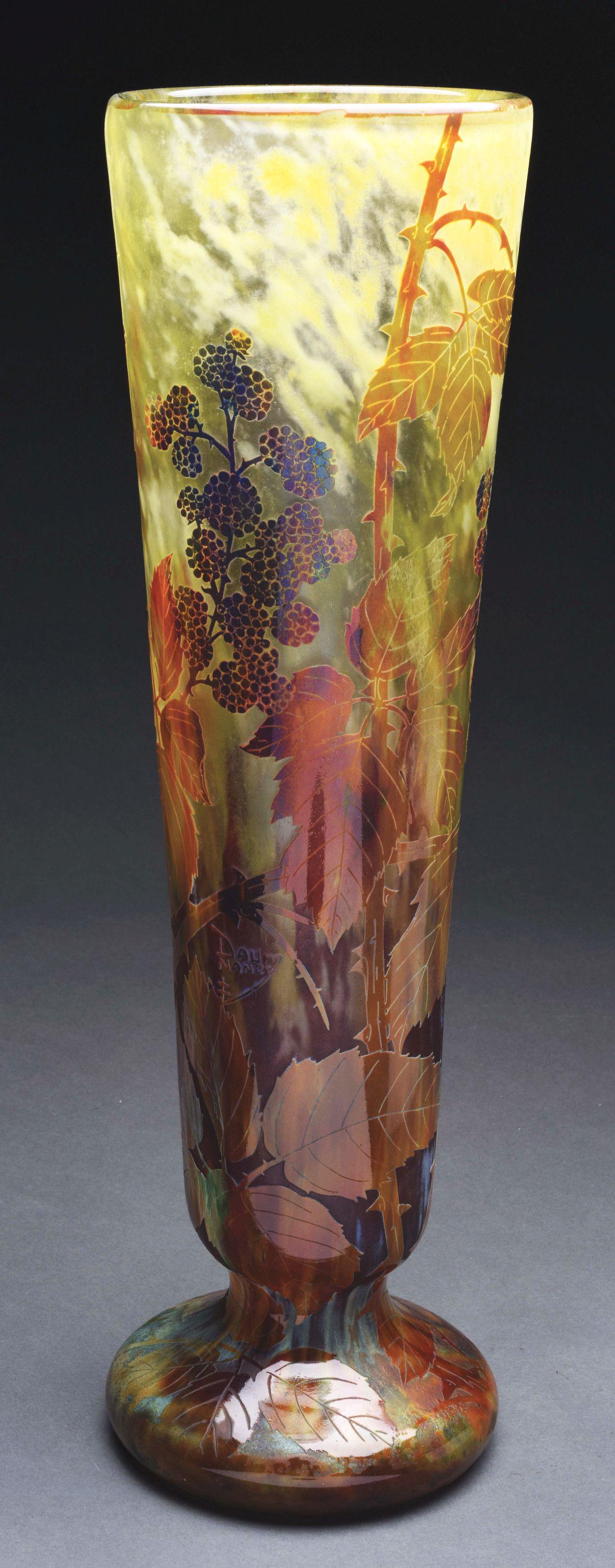 DAUM CAMEO BLACKBERRY VASE.