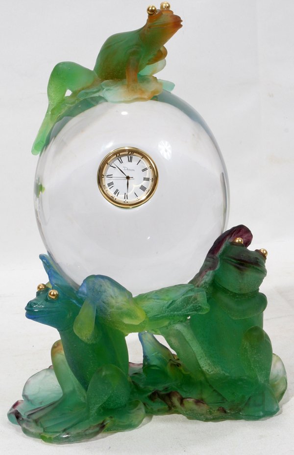 DAUM CRYSTAL FROG CLOCK, H 9 3/4", L 7"
