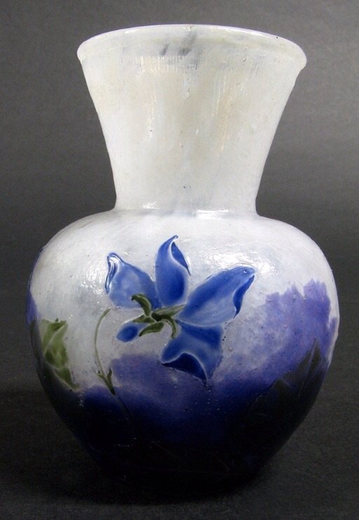 DAUM NANCY ENAMELLED VIOLET FLOWER VASE