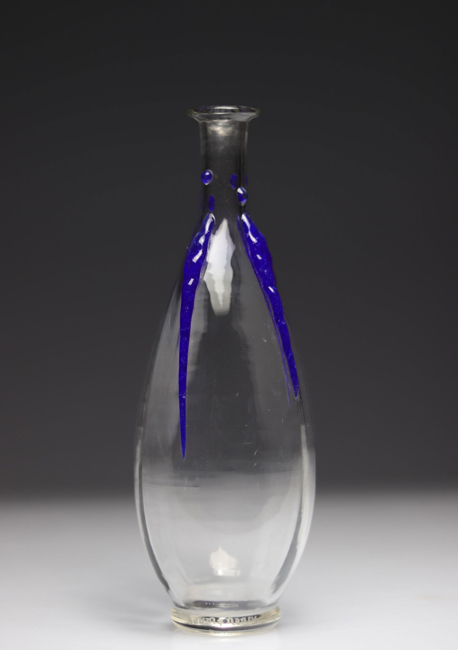 SoldDaum Nancy vase with Irises and applicationsDaum Nancy vase with Irises and applications - Weight: 290 g - Region: France - Sizes: H 80 mm x L 115 mm - Author / artist: Nancy DaumSee Sold Price