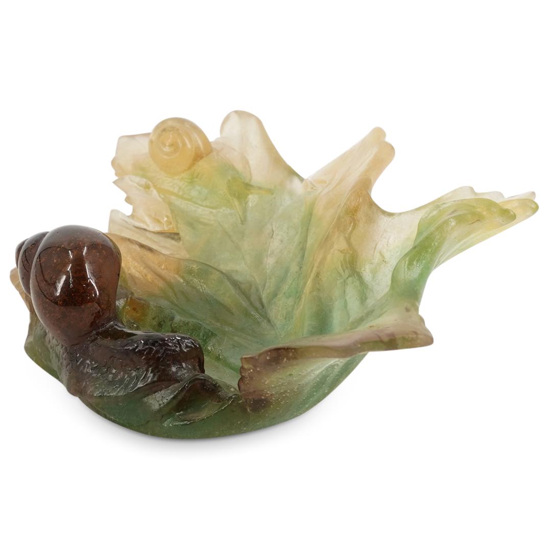 Daum Pate De Verre Sculptural Snails Leaf Dish