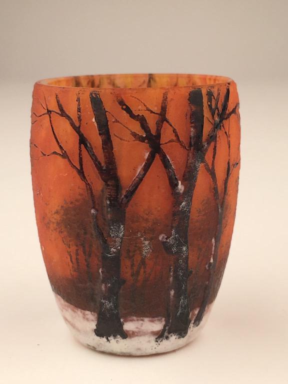 Daum winter scene open beaker shaped mini vase