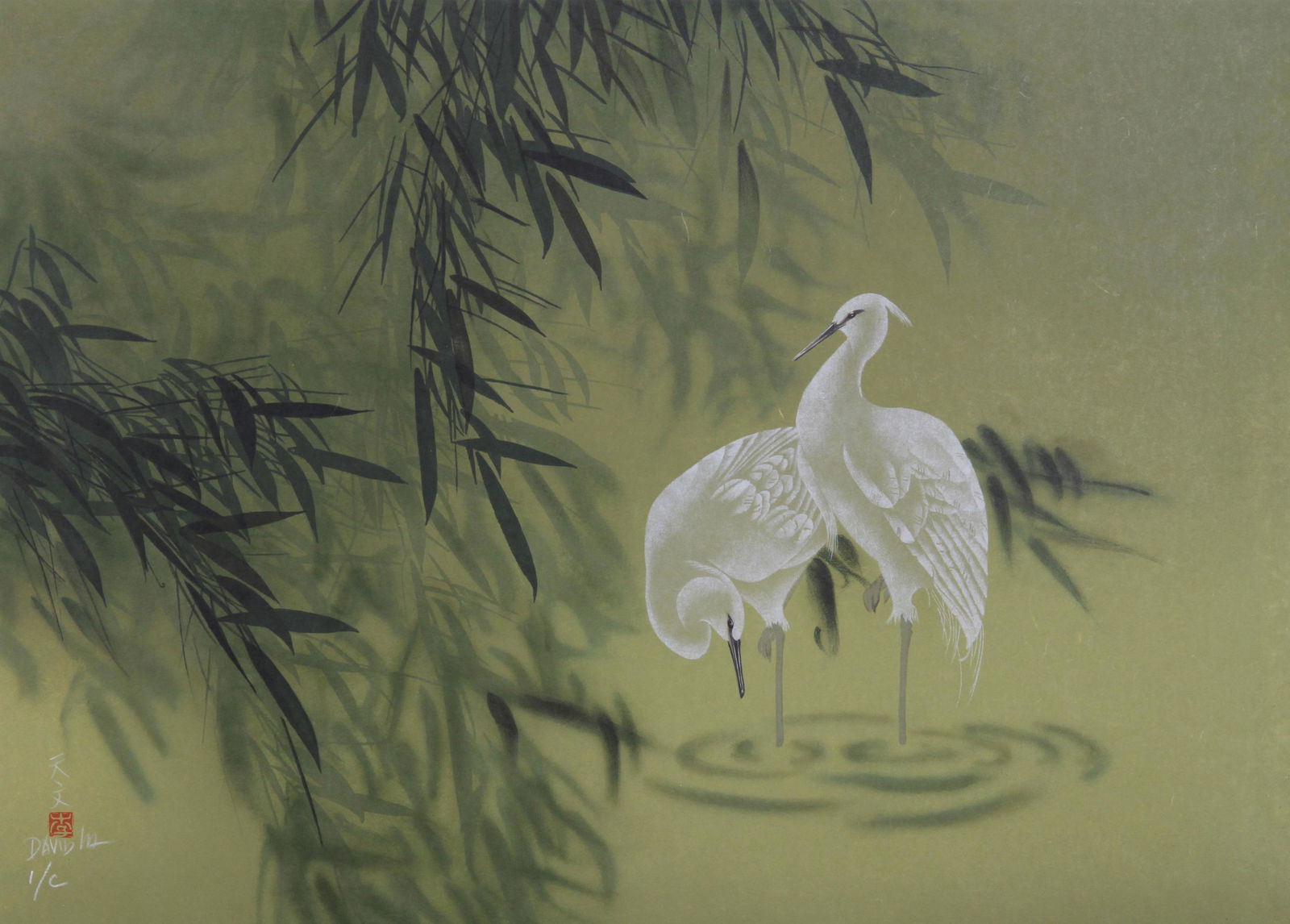 David Lee, White Herons, Lithograph