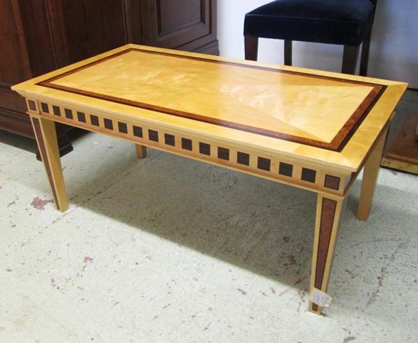 SoldDavid Linley, dining tableDavid Linley dining table LinleyUnited Kingdom, c. 1995sycamore, satinwood, ebony96 w x 48 d x 30 h in (244 x 122 x 76 cm) Sold with one 24-inch leaf; table measures 120 inches when fullSee Sold Price