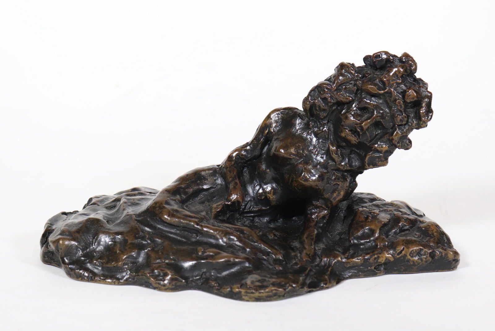 SoldDavid Phelps (b. 1956) OklahomaRECLINING FEMALE, 2000, three-piece bronze sculpture with patina, signed and titled and numbered 9/35 on side of left leg, overall dimensions 10” tall 37” long 22” wide. Purchased frSee Sold Price