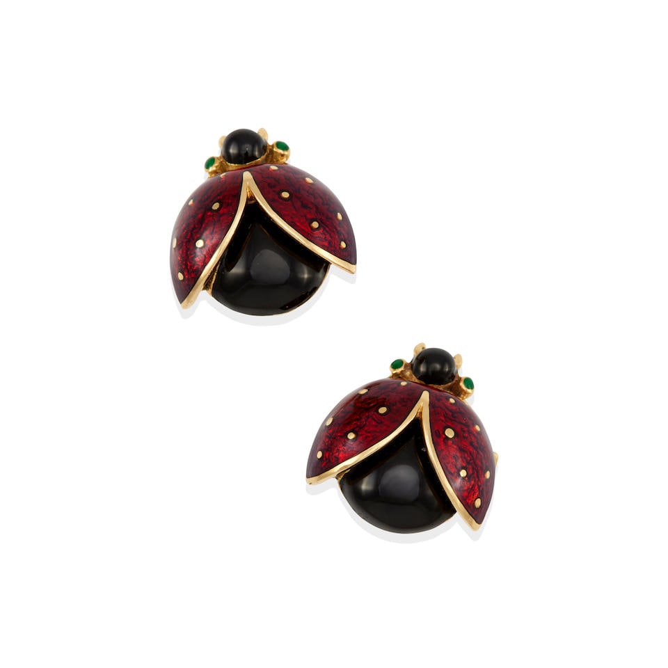 David Webb: 18k Gold And Enamel Ladybug Cufflinks