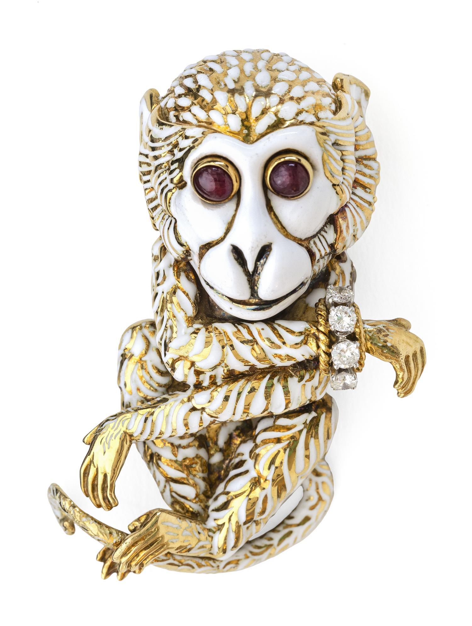 David Webb Goat Brooch Platinum 18K Yellow Gold Enamel Diamond Ruby EyesBidhaus4.2(840)$1003 days Left