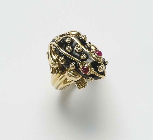 DAVID WEBB, An Enamel and Ruby Frog Ring